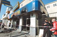 “Los bomberos estuvieron trabajando durante dos horas para apagar el incendio, pero el local quedó destruido en un 70 por ciento”, explicó Suazo. Hasta anoche, los peritos no habían determinado cómo se produjo el fuego, pero sabían que comenzó en el buzón donde los clientes devuelven las películas. El local del Citi, en cambio, terminó con menos destrozos. Las llamas dañaron techo y paredes, pero no alcanzaron las máquinas de dinero. Según los peritos, los autores forzaron la puerta para ingresar al lobby con una botella de plástico con combustible. “Se trató de una bomba incendiaria que no produjo grandes daños”, siguió Suazo.