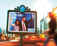 Otro afiche, el de Néstor y Cristina Kirchner agradeciendo al país por el acompañamiento en las urnas, que se confeccionó en la Secretaría de Medios de Enrique “Pepe” Albistur, pareció alimentar la especulación reeleccionista, aunque, por qué no, la de quienes piensan que el Presidente fogoneará a su mujer para la sucesión.
