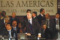 Pero también habló el primer ministro de Canadá, Paul Martin, y a partir de allí el ALCA se convirtió en el tema de la reunión, trastrocando todos los horarios previstos. El presidente de Brasil, Luiz Inácio Lula da Silva, no participó. Se fue temprano porque debía preparar la visita de Bush que pocas horas más tarde saldría para Brasilia. Antes, dio una conferencia de prensa en la que confirmó la postura común con Argentina y su visión de que si antes no se discuten los subsidios agrícolas norteamericanos no tiene sentido entrar en deliberaciones por el ALCA.