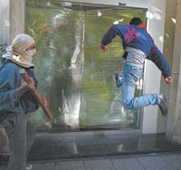La semana pasada, el Ministerio de Seguridad presentó ante la Justicia provincial un informe de inteligencia de la Policía Bonaerense con fotos en las que se ve a dos dirigentes. Están tomadas de filmaciones de Crónica TV, TN y América en las que aparece el referente del MTR-Cuba, Chacho Berrozpe, rompiendo la vidriera del Banco Galicia y luego ayudando a encender una molotov. En otras tomas fue identificado Juan Manuel De Rozas, de Quebracho. En base a esa denuncia, el fiscal Oscar Deniro habría pedido las capturas de De Rozas, Berrospe y otras personas mencionadas en el informe de inteligencia, como Nicolás Lista (de la CTD Aníbal Verón) y Gustavo Munizaga, de la agrupación piquetera M29. Las órdenes no se habrían librado por la declaración de incompetencia del juez de Garantías y su intento de pasarle el caso a su colega Castellanos.