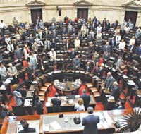 Además de los cambios de caras y jefaturas, otro clásico de fin de año en el Parlamento son las sesiones maratónicas. La semana próxima las autoridades de la Cámara de Diputados intentarán sesionar para aprobar gran parte de los proyectos de ley que caducan a fin de mes, cuando finaliza el período de ordinarias. “Convocaré a reunión de labor parlamentaria para sacar el miércoles aquellos temas en los que haya acuerdo”, aseguró a Página/12 el todavía presidente de la Cámara baja, Eduardo Camaño. En coincidencia, una fuente de la conducción del bloque oficialista afirmó que están conversando con los diferentes bloques para aprobar al menos una veintena del centenar de iniciativas que están por perder estado parlamentario. Entre los proyectos que interesan al kirchnerismo está el que crea la empresa de satélites Arsat, el de Financiamiento Educativo y el de Mecenazgo, ya aprobado en el Senado. La oposición está más interesada en que obtenga media sanción la reducción de los miembros de la Corte y la anulación de los indultos a los jefes de la dictadura.