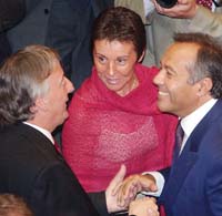 Fue un aliado de Kirchner el que lo desestabilizó. Efusivo, el sanjuanino César Gioja hizo con su abrazo tambalear al Presidente y a un tris ambos estuvieron de caerse. A esa altura la mayoría de los senadores saludaban a su referente político, luego a Kirchner. El puntano Adolfo Rodríguez Saá le dedicó a su hermano Alberto su primer abrazo, luego fue hacia Kirchner y de a uno a los restantes gobernadores. Concluyó con un efusivo abrazo del riojano Menem. Mientras ambos se abrazaban, el ex titular de la Side Luis Lusquiños, Ana María Torrontegui y el ex masserista, ex director de Migraciones durante el menemismo y hoy diputado nacional Hugo Franco, esperaban su turno para abrazar al Adolfo. Todos los gestos estaban cargados de simbolismo político.