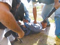 La policía entró al barrio a fuerza de palos y balas de goma; también con caballos. Las escenas más violentas tuvieron lugar en los pasajes peatonales que dividen las distintas parcelas, donde los jefes de familia y sus hijos adolescentes intentaron hacer frente a los policías.