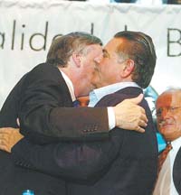 Curto, uno de los que encabezaron el éxodo de los intendentes duhaldistas al kirchnerismo, también hizo punta en fogonear la reelección, aunque no fue el único. “Me parece que si el país se encamina a resolver los problemas de la gente, inevitablemente va a haber una reelección del presidente Kirchner”, aseguró el jefe comunal de Tres de Febrero. “El PJ y todas las fuerzas lo van a acompañar” a Kirchner en la reelección, dijo Mércuri. El que prefirió hacer un gesto reconciliador en lugar de hablar fue Atanasof: el hombre que cargó con gran parte de la campaña de Chiche Duhalde subió al palco y abrazó con fuerza al Presidente.