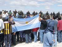 Los trabajadores petroleros esperaron con mucha tensión y ansiedad la llegada de los gendarmes. “Realmente no sabemos si van a dialogar o si avanzarán con las tropas sobre los piquetes”, resumía Adrián Saucedo, un delegado de los trabajadores. Navarro pidió calma a sus compañeros y logró que se apartaran de la ruta cuando aparecieron las tropas, que se alinearon marcialmente frente a la manifestación. “No somos violentos, ni piqueteros”, definió Navarro, y pidió una mesa de diálogo para resolver el conflicto. Tuvo una breve reunión con Tibiletti y se comprometió a despejar la ruta y correr la movilización a un costado. Así se mantuvieron en la banquina durante todo el día.