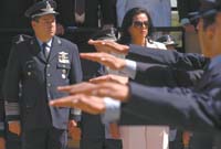 El jefe de la Fuerza Aérea, Eduardo Augusto Schiaffino, se paró al frente de sus hombres con el objetivo de hacer una autocrítica explícita a la represión ilegal. La hizo, pero tuvo sus lapsus. “La Fuerza Aérea que hoy me toca conducir asume la obligación moral ante la Nación de reconocer y repudiar los hechos contra la dignidad del hombre cometidos por integrantes de nuestra institución en aquellos días”, estaba escrito. Al leerlo, el brigadier obvió “el repudio”. Después del acto aclaró que “fue un error en la lectura que corrijo”. Sin equivocaciones, remarcó que “no hay solidaridad con el delito, no hay solidaridad con la tortura y no hay solidaridad con la cobardía”. La ministra de Defensa, Nilda Garré, se declaró “muy satisfecha” por el anunciado discurso del aviador a escasas dos semanas de los treinta años del último golpe militar y destacó “la firme decisión de los cuadros de hoy de quedar claramente diferenciados de lo que fue aquel proceso de aplicación del terrorismo de Estado”.