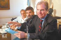 El ministro de Educación, Daniel Filmus, prometió ayer que “a mediados de 2007” se distribuirán un millón de computadoras portátiles, compradas por el Estado a cien dólares cada una. Cada laptop será entregada a un estudiante de educación básica del país. Filmus hizo el anuncio acompañado por Nicholas Negroponte, director del Instituto de Tecnología de Massachusetts (MIT) e impulsor del programa “Una laptop por chico”. El ministro informó que la distribución de las computadoras se hará directamente a las escuelas y que el reparto se va a coordinar “entre las regiones y ciudades”. Negroponte explicó que existe un “factor limitante” para la aplicación del proyecto, que es la conectividad. “Van a funcionar con alimentación humana, ya sea con dispositivos a manivelas y pedales”, dijo.