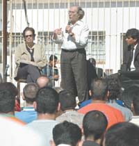 El Nobel de la Paz, acompañado por Laura Conte, de Madres, dio una charla, organizada por la Comisión por la Memoria, en la cárcel de La Plata donde el año pasado se probaron torturas a los presos.