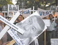 “Menéndez, en tu nombre repudiamos a todos los cobardes que no se hicieron y no se hacen cargo de tantas muertes y de la traición”, dijo Rodolfo Merlino, el titular del Centro de Ex Combatientes de Malvinas de La Plata, que ayer encabezó el escrache al ex gobernador militar de la isla, Mario Benjamín Menéndez, un día antes de que se conmemore el inicio de la guerra. Los veteranos marcharon con antorchas y cruces blancas con los nombres de los caídos hasta el frente del domicilio de Menéndez, en Arcos al 1500, donde reclamaron juicio y castigo para los responsables de la guerra y le pidieron al presidente Néstor Kirchner que Menéndez no siguiera cobrando por Anses una pensión honorífica como ex combatiente. “Le pedimos al Presidente que revise el decreto 886/05. Estamos de acuerdo con su política de derechos humanos, pero esto no nos cierra”, sostuvo Ernesto Alonso, otro de los ex veteranos.