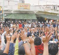 A la tarde se efectuó otra movilización de centenares de residentes bolivianos, esta vez hacia el local de la cooperativa La Alameda en Parque Avellaneda. “Trabajo y dignidad”, coreaban; “Trabajo no es robar”; “Vivan los pueblos originarios”. Rolando Nogales, uno de sus dirigentes, afirmó que “no nos negamos a las inspecciones pero queremos trabajar”. Luis Ayala apuntó a “los grandes empresarios textiles que nos pagan migajas y nos quitan el trabajo que encargan si pedimos precios justos”. Los manifestantes también censuraban al dirigente Gustavo Vera, de La Alameda (ver aparte).