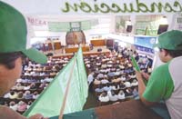 Moyano exteriorizó ayer su acumulación de estos años, que se redondeará cuando Néstor Kirchner convoque al Consejo del Salario para que homologue un aumento del salario mínimo. El Presidente intentará que lo haga al modo del Congreso Nacional, esto es sin autonomía, creatividad ni debate. Como fuera, por abajo y por arriba del universo de los trabajadores formales Moyano quedará revalidado pues logró mejorar las condiciones de sus representados. Ya ganó, cómodo, la interna cegetista y va por más.