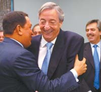 Chávez también disipó cualquier especulación acerca de cuál sería su posición en el conflicto entre argentinos y uruguayos por la plantas de celulosa. Se trata, dijo, de un “tema bilateral entre dos repúblicas hermanas, dos gobiernos legítimos”.