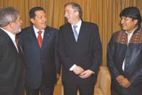 EL PAíS › KIRCHNER, LULA, CHAVEZ Y EVO SE REUNIERON Y FIRMARON UN ACUERDO EN IGUAZU