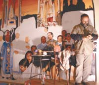 La tela tiene 5 metros de ancho por 8 de largo y está siendo pintada en una sala junto a la basílica por el artista porteño Octavio Calvo, que fue contratado por Sigampa. Muy molesto, Calvo salió a aclarar que él “no es un pintor político” y sostuvo que la obra había sido expuesta en el Congreso y “nadie dijo nada”. Por su parte, el párroco Montiel defendió el cuadro. Explicó que representa una situación real: la visita a La Rioja de la Virgen del Valle de Catamarca en junio de 1995 (de allí la sonrisa reeleccionaria de Menem) y que los políticos aparecen porque “se trata de un hecho histórico”. Montiel también rechazó la idea de que se retiren los rostros de Menem y Maza del mural y aclaró que “no sólo el gobierno” financió la obra, “sino también algunos particulares”.