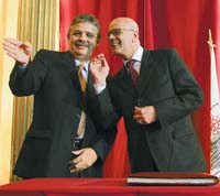 Dos actos sobresalieron ayer en la agenda de Jorge Telerman: uno en la Casa Rosada, donde el presidente Néstor Kirchner no se detuvo en la polémica planteada con el kirchnerismo por sus cambios de gabinete y habló de “interrelación de gobernabilidad”; otro en la Jefatura de Gobierno y sin kirchneristas de peso a la vista, donde justamente puso en funciones a sus dos nuevos ministros: el ex macrista Juan Pablo Schiavi en Obras Públicas y Alberto De Micheli en Salud. Telerman aseguró allí que su administración tiene “lo público como norte inexcusable”, mientras trabajadores del Banco Ciudad manifestaban afuera en contra de su eventual privatización. El temor de los bancarios radica en la decisión de nombrar como presidente de esa entidad a Julio Macchi en reemplazo de Eduardo Hecker.