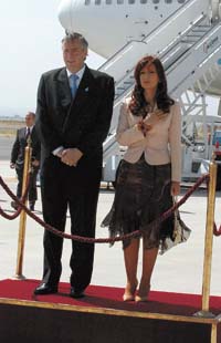 Después de 11 horas de vuelo, la comitiva presidencial llego al Pabellón de Estado del aeropuerto de Barajas. Una jornada calurosa, con lluvias intermitentes, no privó al jefe de Estado de una jornada distendida en relación con lo que serán las próximas 72 horas. Después de almorzar con sus ministros –lo acompañan Daniel Filmus, Julio De Vido, Felisa Miceli y Alberto Fernández–, los diputados Alberto Balestrini y José María Díaz Bancalari y el senador Miguel Picheto, se dirigió al Museo del Prado, donde pudo apreciar una muestra en la que las obras de Pablo Picasso están colgadas junto a réplicas de célebres pintores españoles, estableciendo “un diálogo entre los artistas”, según dijo la guía a la que seguía atentamente la pareja presidencial.
