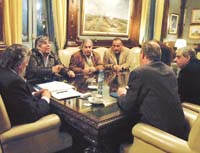 En la tarde de ayer quedó en claro, una vez más, la inclinación de Kirchner por el sindicalismo peronista. Moyano no llegó solo: lo acompañaron José Luis Lingeri, Juan Manuel Palacios y Angel Frutos, miembros de elenco estable de la CGT. En cambio, la CTA, de Víctor De Gennaro, y la Unión Industrial, de Héctor Méndez, fueron anoticiados telefónicamente.