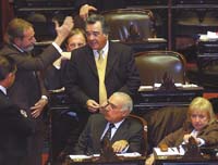A medianoche el recinto se había vaciado a medida que se iban poblando los restaurantes de la zona de Congreso. Pero a las cuatro había 227 legisladores en el recinto cuando el jefe del bloque radical Fernando Chironi anticipó que iba a ser “telegráfico”. “Se nos quiere hacer creer que estamos debatiendo sólo por un artículo y que por eso se trata de una cuestión administrativa... Y ahora resulta que durante 153 años de vigencia de la Constitución, que faculta al Congreso a fijar límite al gasto, hemos vivido equivocados”, ironizó. Al mismo tiempo calificó de “sanata” las “tres hojas” de fundamentos que envió el Poder Ejecutivo. “(Néstor) Kirchner les decía ayer (por el jueves) a los rosarinos que le votaran esta ley porque tenía obras en esa zona paradas. Y esto es falso”, arremetió Chironi.