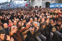 Cuando termina de cantar, las mujeres de la familia Gullo arrojan rosas rojas sobre la gente. Algunos reaccionan con otra canción: “Somos los descamisados/ somos de Perón y Evita/ y los desaparecidos, compañeros peronistas”. En las primeras filas hay figuras conocidas. Están el canciller Jorge Taiana; el secretario general de la Presidencia, Oscar Parrilli; los ministros Daniel Filmus y Carlos Tomada; el secretario de Derechos Humanos, Eduardo Luis Duhalde; el titular de la SIDE, Héctor Icazuriaga; los diputados Miguel Bonasso y Julio Piumato; el secretario general de la CGT, Hugo Moyano. Más tarde llega el gobernador Felipe Solá. Dante Gullo le había encargado que cerrara el acto.