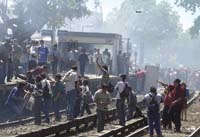 “El tren venía fuera de horario y había mucha gente. Dejé pasar varios hasta que pude subirme a uno que no venía tan lleno. Trabajo con mi tío, como es un negocio familiar puedo llegar un poco más tarde. Encima, ese día no tenía muchas ganas de ir a trabajar”, se lamenta Roberto, cuyo tren se detuvo media hora en Castelar y Morón, antes de encallar en unos talleres mecánicos cercanos a la estación de Haedo, a la que finalmente llegó caminando entre las vías electrificadas junto a los demás pasajeros. Con algunos de ellos fue hasta un andén más alejado, desde donde parte un ramal que lo lleva diariamente a la tapicería de sus tíos en Lomas de Zamora. “Había mucha bronca, la gente ya le tiraba piedras al tren. Fui a averiguar y me dijeron que mi tren salía. Me quedé en el andén con otros pasajeros que también estaban esperando. Pasaron 20 minutos y apareció gente de otros lados; ahí empezó el quilombo.” Después del saqueo, Canteros permaneció en el andén viendo cómo el fuego consumía los vagones. “Habían cancelado mi tren y me quedé como un chusma, a ver qué pasaba”, asegura.