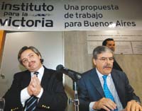 Aunque muchas veces se los señala como protagonistas de una sorda interna en el Gobierno, ayer se mostraron juntos: el jefe de Gabinete, Alberto Fernández, y el ministro de Planificación, Julio De Vido, compartieron un acto del Instituto para la Victoria, un organismo creado hace un mes para mejorar las chances del oficialismo en un distrito reticente. “Estamos hablando sobre lo que hace falta a la gente, escuchando a los que saben, por eso invitamos a De Vido para que nos cuente lo que está haciendo en obra pública en Capital y Gran Buenos Aires”, indicó Fernández, que encabeza el PJ porteño. Al ingresar al encuentro en la sede de Suterh, De Vido señaló que se siente “parte del Frente para la Victoria”. “Gracias a la versatilidad que tiene Alberto en el Presupuesto nacional –y no, como dicen los odiosos, que De Vido se lleva tantos pesos– es para hacer obras públicas”, respondió De Vido.