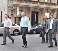 El Boeing de Aerolíneas en el que viajaron el Presidente y su comitiva aterrizó a las siete en el JFK. Al pie de la escalerilla los recibieron el embajador en Washington, José Octavio Bordón, y el representante ante la ONU, César Mayoral. Menos de una hora después, Kirchner ya estaba en su suite en el Four Seasons, su hotel favorito en sus últimos viajes a Nueva York. Es que pese a que es un moderno cinco estrellas, no está en el circuito de los jefes de Estado y allí no debe sufrir la incomodidad de alternar con otras delegaciones. Más bien si se cruza con alguien en sus pasillos será con alguna estrella del cine o del deporte. Kirchner y su mujer, la senadora Cristina Fernández, pasearon ayer poco y nada pese al espléndido día con que los recibió Nueva York. Junto al jefe de Gabinete, Alberto Fernández, fueron a comer al restaurante Bice, a dos cuadras de su alojamiento. Junto a ellos vinieron el ministro de Planificación, Julio De Vido, y el secretario de Legal y Técnica, Carlos Zannini. El canciller Jorge Taiana los esperaba desde el sábado porque vino en un vuelo desde Alemania. La ministra de Economía, Felisa Miceli, en tanto, llegará mañana desde Singapur, a tiempo para el anuncio de regularización de la deuda con el Club de París.