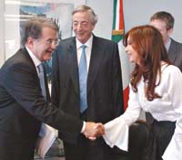 En el primer encuentro en cuatro años entre mandatarios de ambos países, Kirchner y Prodi coincidieron en reactivar los vínculos diplomáticos y económicos. Tras un tanteo sobre el tema de los bonistas, Prodi informó sobre próximas inversiones de Fiat.