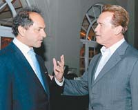 El vicepresidente Daniel Scioli, que asistió en México a los actos de asunción del presidente Felipe Calderón, se reunió ayer con el reelecto gobernador de California, Arnold Schwarzenegger. Según informó en un comunicado su oficina de prensa, Scioli dialogó con el actor sobre temas ambientales y sobre la situación en el estado norteamericano que gobierna Schwarzenegger. De acuerdo con esa información, el vicepresidente se interesó por conocer las políticas que está llevando adelante California en la materia, particularmente la reducción de los gases que provocan el denominado “efecto invernadero”. Scioli le obsequió a Schwarzenegger un vino Malbec mendocino, ya que el estado que gobierna el actor es el principal productor de vino en Estados Unidos.