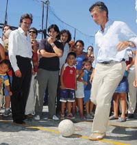 Cerca de él, otros dirigentes del PRO también daban su opinión sobre la posibilidad de sellar un acuerdo con Lavagna como candidato a presidente y Macri para jefe de Gobierno porteño. “Creo que no es viable, vamos a tener candidaturas propias en todas las categorías. No aceptamos condicionantes o posturas absolutas que arranquen desde las aspiraciones personales”, aseguró el primo hermano de Mauricio, Jorge Macri, y candidato a gobernador bonaerense, según la leyenda inscripta en la Toyota Hilux con la que llegó hasta Lanús. La publicidad ambulante se completaba con la indefinición del PRO como consigna: “Mauricio Macri 2007”.