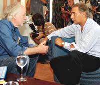 Recién llegado a La Feliz, el gobernador de Neuquén recibió en el colosal Hotel Costa Salguero a un distendido Blumberg sin corbata, con una camisa azul desabrochada y jeans. “Estoy de sport”, le aclaró el ingeniero, que llegó dos horas tarde al encuentro, ya que tuvo que viajar desde Cariló. Debatieron la posibilidad de un frente, con el que Sobisch se mostró de acuerdo. Lo único que le advirtió es que “el tema de convocar al Gobierno no tiene mucho asidero”. Luego ofrecieron una conferencia de prensa en el subsuelo del hotel.