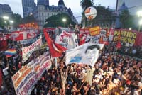 Abajo, la Plaza estaba llena y las columnas de manifestantes que esperaban para entrar se extendía hasta tocar el Congreso. Las organizaciones convocantes de la marcha fueron 354, entre organismos de derechos humanos, movimientos sociales y barriales, centros de estudiantes y partidos políticos de izquierda.