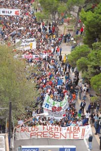 Al frente iban los compañeros de colegio de Carlos Fuentealba y la comunidad educativa del Cpem 69, donde enseñaba el docente asesinado. Detrás las Madres de Plaza de Mayo de Neuquén y el Alto Valle. Luego la inmensa columna de Aten y todas las delegaciones de la provincia que llevaban crespones negros sobre sus guardapolvos blancos. Lo seguían los docentes rionegrinos y del resto de las delegaciones que llegaron desde distintos puntos del país; las organizaciones sociales; la comunidad mapuche y los gremios, entre ellos los obreros de Zanon, la CTA, ATE y un colorido grupo de los camioneros del pope cegetista Hugo Moyano. “Sobisch asesino” y “No hubo errores, no hubo excesos, son todos asesinos los milicos y el gobierno”, eran las consignas más coreadas.
