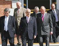 El largo día empezó cerca de las nueve de la mañana en la Quinta de El Pardo, en las afueras de Madrid, donde se sentaron ambas delegaciones, una de cada lado, a una mesa con forma en U con el facilitador Yáñez Barnuevo en el medio. Cada equipo tenía asignada, además, una sala para hablar en privado. A media mañana los cancilleres, el Fernández argentino y el Fernández uruguayo (Gonzalo), secretario presidencial, se fueron para el Palacio de la Zarzuela, residencia de la familia real, ubicada en el mismo monte de El Pardo. El rey los recibió en la sala de Audiencias, la misma donde asumió el gobierno de José Luis Rodríguez Zapatero. Es un recinto poblado de cuadros, platos de plata y un gran tapiz. Enseguida los invitó a pasar a un patio con vista al bosque para hacer la esperada foto. Y todos contentos.