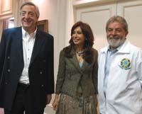 Los dos presidentes se reunieron a solas y luego se incorporó Cristina Fernández de Kirchner. En una sala contigua, ministros y técnicos abordaron las formas de alcanzar una “sinergia” en los proyectos sobre biocombustible y la propuesta del Banco del Sur impulsada originalmente por Venezuela y que causa recelo a los brasileños.