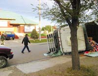 Mansilla Alarcón tomó la calle Maipú a contramano y fue hasta 25 de Mayo, donde queda la casa del Presidente. La vivienda estaba vacía, y Kirchner y su mujer en la Quinta de Olivos, pero al parecer el conductor no lo sabía. Al llegar frente a la casa hizo una brusca maniobra para embestirla pero, según explicaban ayer en la Casa Rosada, no supo doblar un camión de semejante porte con acoplado. Le hizo un “efecto tijera” y terminó volcando en la vereda de enfrente.
