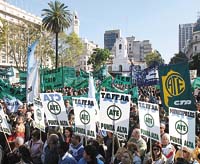 La Asociación Trabajadores del Estado (ATE) realizó ayer un paro de 24 horas y se movilizó hasta la Plaza de Mayo en rechazo al aumento del 16,5 por ciento dispuesto “unilateralmente por el Gobierno y la CGT”. El acto fue encabezado por el dirigente nacional Pablo Micheli, el líder de la seccional bonaerense, Jorge Godoy, y el titular del gremio de Santa Cruz, Alejandro Garzón, quien denunció que “en la provincia del Presidente no hay libertad de prensa, se nos amenaza a diario, no tenemos convenio colectivo y nuestro sueldo es de 40 a 60 pesos de básico”.