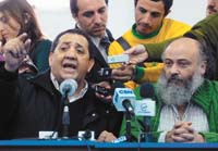 En la conferencia de prensa estuvo acompañado por Emilio Pérsico, del Movimiento Evita, y dirigentes del Frente Transversal, las organizaciones Plátano, Octubres, Bicentenario y el M24, entre otros. Los referentes dijeron que el jueves, en un plenario de los movimientos sociales que se hará en el Hotel Bauen, resolverán qué medidas concretarán. Pérsico invitó a todas las organizaciones sociales y sindicales del kirchnerismo a participar del debate: “Continúe o no la protesta del campo, vamos a realizar acciones para llegar juntos al 25 de Mayo”, sostuvo. “El (ex) presidente Kirchner nos sacó del infierno y no queremos volver más al infierno. Vamos a manifestarnos en lugares donde hicimos cortes históricos en la lucha contra el modelo neoliberal.”