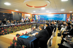 Ni lerdos ni perezosos, los diplomáticos españoles están tratando de convencer a las delegaciones para que suscriban un documento que apoye el derecho del jefe de Estado español José Luis Rodríguez Zapatero a asistir a la cumbre. La promesa de España es que si los países latinoamericanos lo apoyan, ellos impulsarán ante el G-20 las conclusiones que alcancen aquí los presidentes de América latina.