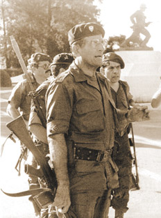 Seineldín hubiera sido un oficial reaccionario más si no fuera por Malvinas, la guerra que perdió y lo radicalizó. Según contó él mismo en su memoria de combate, el coronel ya era un insoportable maníaco religioso cuando aterrizó en las islas. Quizá por la tensión de la situación, terminó teniendo visiones místicas y a cada momento se hincaba a rezar con sus colimbas. Que por supuesto tenían que hincarse también. Como todo extraviado, Seineldín rememoró orgulloso con qué fe rezaban sus soldaditos y nunca se le pasó por la cabeza que lo hacían por obligación.