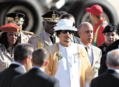 - Gorritas de Muammar. La visita del histórico mandante de Libia no pasó nada desapercibida para curiosos, militantes del chavismo e incluso para los funcionarios del gobierno venezolano. La expectativa que había despertado la figura de Khadafi pudo comprobarse en el bunker que la organización había destinado a la supervisión y entrega de credenciales: el Hotel Margarita Village Resort. Quien fuera hasta allí a buscar su acreditación se encontraba con las tradicionales gorritas rojas a favor de Chávez, pero también con otras blancas y verdes que mostraban a Khadafi levantando los brazos, en un gesto parecido al de Perón.