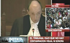 Al llegar desde Venezuela, a la medianoche, el canciller Jorge Taiana dio una conferencia de prensa en Aeroparque donde consideró que el fallo de la Corte de La Haya dejó en claro que el “tratado (del Río Uruguay) está vigente, por lo que sucedió no puede suceder más”. También consideró que “el mecanismo de consulta está vigente y no valen las decisiones unilaterales”, en referencia a la actitud uruguaya de permitir la instalación de las papeleras en la orilla del río Uruguay. Con todo, Taiana destacó que “nadie puede estar contento” con el fallo, porque era una instancia a la que no se hubiera querido llegar, pero consideró “importante que la Corte Internacional haya valorado lo que valoró”. El canciller adelantó que seguramente hoy se pondrá en contacto con su par uruguayo, Luis Almagro, para determinar los próximos pasos a seguir. En principio, se había acordado que las cancillerías serían las encargadas de “administrar” el fallo. La otra inquietud es armar cuanto antes un nuevo encuentro entre Cristina Kirchner y José Mujica, como para dar definitivamente la vuelta de página a la relación. No obstante, en este caso, el entusiasmo parecería mayor del lado uruguayo que del argentino para concretar el encuentro, sobre todo porque seguramente habrá algún reclamo uruguayo para que el gobierno argentino tome una determinación sobre el corte de ruta en Gualeguaychú en caso de que, como se prevé, continúe.