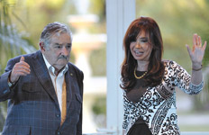 13 de enero. El presidente electo de Uruguay, José Mujica, se reúne con Cristina Fernández por Botnia.