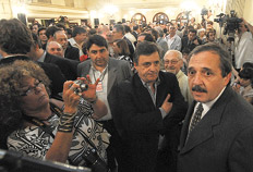 En el mismo hotel donde celebró su victoria sobre los históricos caciques radicales bonaerenses Leopoldo Moreau y Federico Storani que lo catapultó como candidato, el diputado bonaerense exhibió ayer una herramienta informática con la que planea sumar aportes para construir su plan de gobierno. “Venimos a presentar propuestas, plataformas, y ustedes siempre preguntan por la interna y después los internistas somos nosotros”, dijo ayer Alfonsín, consciente de que en un par de horas se dirimiría la pelea por la conducción del bloque de senadores que enfrentaba a su compañero y titular de la bancada, Gerardo Morales, con el vicepresidente Julio Cobos.