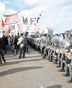 Dispar suerte tuvieron los piquetes porteños. Muy temprano, un grupo de manifestantes se aglutinó en el Obelisco. Otro del MST, con el legislador Alejandro Bodart al frente, cortó la avenida Callao, pero los integrantes de las fuerzas de seguridad evitaron que los pocos manifestantes también interrumpieran el tránsito sobre la avenida Corrientes, en medio de algunos encontronazos y forcejeos. Ambos piquetes fueron de los primeros en levantarse.