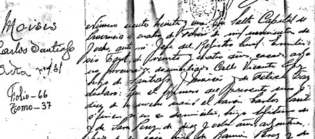 El moderado interés jurídico del trabajo se compensa con el innegable aporte que significa como material para un estudio de caso. La partida de nacimiento del autor, inscripta en el Folio 66 del Tomo 37 del Registro Civil de la ciudad de Salta, lo identifica como Carlos Santiago Moisés, y permite reconstruir la historia familiar: