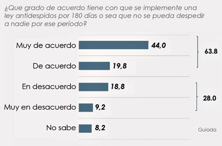 Ni Bacman ni Haime encuestaron en los últimos días sobre la ley antidespidos o la doble indemnización, porque se trata de polémicas muy recientes. Bacman intuye que debe haber una mayoría a favor de esos proyectos, en sintonía con los datos que surgen de la encuesta de Del Franco y Aurelio. Por su parte Haime cree que las opiniones están más divididas. “En relación a cómo reacciona la opinión pública ante proyectos como el de la suspensión de despidos o la doble indemnización, si bien carecemos de estadísticas respecto a esa cuestión puntual, podemos suponer que dado que estamos volviendo a vivir un momento de alta polarización y que el tema se politizó, lo más probable es que la población se divida prácticamente en dos.”