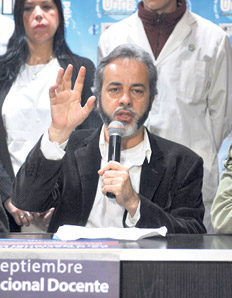 “Los docentes quieren enseñar en lugar de parar, pero no pueden permanecer indiferentes mientras observan que el centro de la escuela dejó de ser el conocimiento para ser otra vez el comedor”, afirmó ayer el titular de la Unión Trabajadores de la Unión porteña (UTE), Eduardo López (foto), al anunciar la decisión de ese gremio de sumarse a la huelga nacional docente que la Ctera convocó el próximo martes. El dirigente explicó que la huelga, que coincidirá con la que realizarán los estatales de ATE, “procurará impedir una reducción del salario real docente y defender la educación de calidad, atacada por un gobierno que desfinancia los programas educativos y, al mismo tiempo, deteriora la capacitación”, manifestó. La medida de fuerza incluirá una movilización de los docentes junto a estudiantes y sus familias desde la Plaza Congreso hasta la sede del Ministerio de Educación.