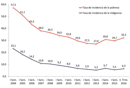 Con la nueva canasta de pobreza e indigencia definida por el Indec, muy distinta a la tradicional, el Instituto Cifra/CTA recalculó las tasas correspondientes para el periodo 2004-2016. Las nuevas canastas de pobreza e indigencia poseen una mayor cantidad de productos y, a su vez, modifican la ponderación entre ellos. Por lo tanto, no son comparables con las anteriores estimaciones realizadas por el Indec y por Cifra. Para estimar en forma consistente la evolución de la pobreza y la indigencia, Cifra recalculó las tasas correspondientes a cada período en base a la nueva canasta definida por la Alianza Cambiemos en el Indec, utilizando el IPC-Indec hasta 2006 y el IPC - 9 Provincias entre 2007 y 2015. Los cuadros que acompañan esta nota muestran las tasas recalculadas para todo el periodo. Permiten apreciar tanto el salto que produjo la devaluación forzada por la corrida cambiaria de 2014 como el que provocó Macrì (en forma deliberada para bajar costos laborales) y fundamenta el reclamo de reabrir las negociaciones paritarias para contrarrestar esa caída. Si esos datos del total de aglomerados urbanos se proyectan a todo el país indican que desde diciembre se crearon 1,2 millones de nuevos pobres. Esta tarea imprescindible subsana tanto los efectos de la vandalización del Indec, que desde 2007 devaluó toda palabra pública, como el aprovechamiento del inédito apagón estadístico por parte de Macrì, con la pretensión oportunista de ser evaluado por lo que ocurra a partir de ahora. Así intenta omitir los nueve meses en los que produjo una caída abrupta del poder adquisitivo de los salarios y un aumento consecuente de la pobreza.