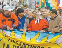 “No creo que Fidel se abrazara o saludara a Bush”, comentaron dos jóvenes que estaban en la esquina de Independencia y Vieytes, al reparar en el panel de los retratos presidenciales. En las esquinas, grupos de personas esperaban sumarse a la manifestación. La del grupo Argentinos por la Patria Grande era encabezada por Hebe de Bonafini, Miguel Bonasso, Luis D’Elía y otros dirigentes de los grupos piqueteros cercanos al kirchnerismo. Una de esas agrupaciones se reunía bajo el estandarte de Movimiento Sur, un nucleamiento que trabaja en municipios del sur del Gran Buenos Aires y responde a una secretaria de Alicia Kirchner en el Ministerio de Acción Social.