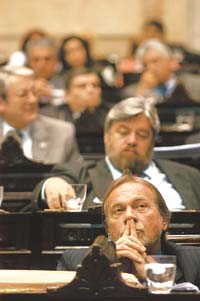Primero comenzó a escucharse como un murmullo que bajaba desde los palcos. Luego, cuando se sumaron los diputados que estaban en el recinto, sonó como una marea. “Los muchachos peronistas, todos unidos triunfareeeeeemos...”, dispararon las barras que agitaban las banderas que se identificaban con Alberto Balestrini. El plenario de legisladores acababa de votar al matancero como titular de la Cámara de Diputados. La marchita fue creciendo en intensidad, la vergüenza fue dando paso al entusiasmo y, de a poco, la bancada del oficialismo aumentó el volumen y no faltó quien la acompañó con los dos dedos en V. Como pocas veces, el himno partidario dejó en claro que los peronistas no están unidos. Los duhaldistas eran testigos mudos de una liturgia que hace mucho no se escuchaba en el Congreso. Folklore que suele estar lejos del estilo kirchnerista. Aunque los dedos se les iban haciendo tamboril sobre la banca, los puntanos de Rodríguez Saá tampoco se sumaron al coro. Desde el espacio transversal más de un legislador no ocultó su sonrisa. Fue el cierre de una larga y visceral sesión que marcó el comienzo de la elección de las nuevas autoridades del cuerpo.